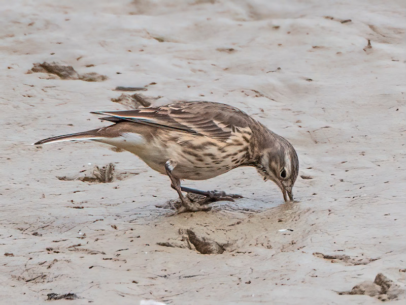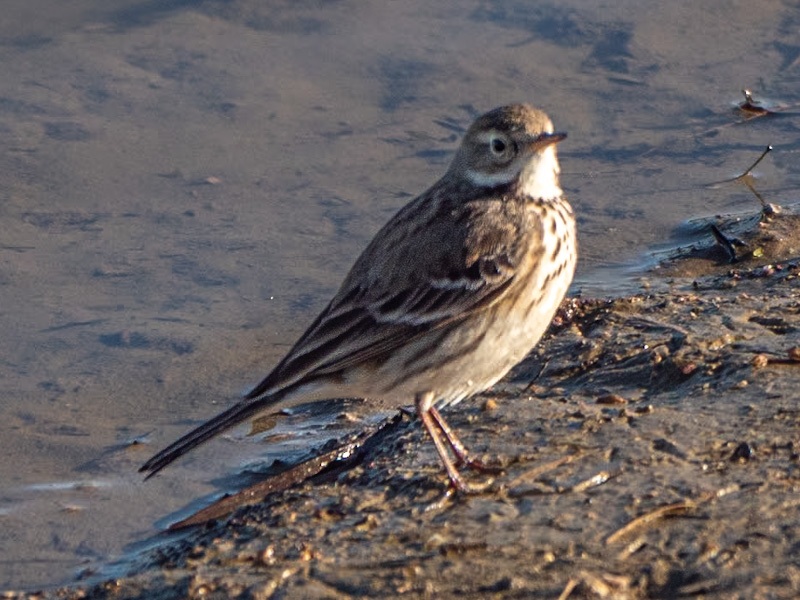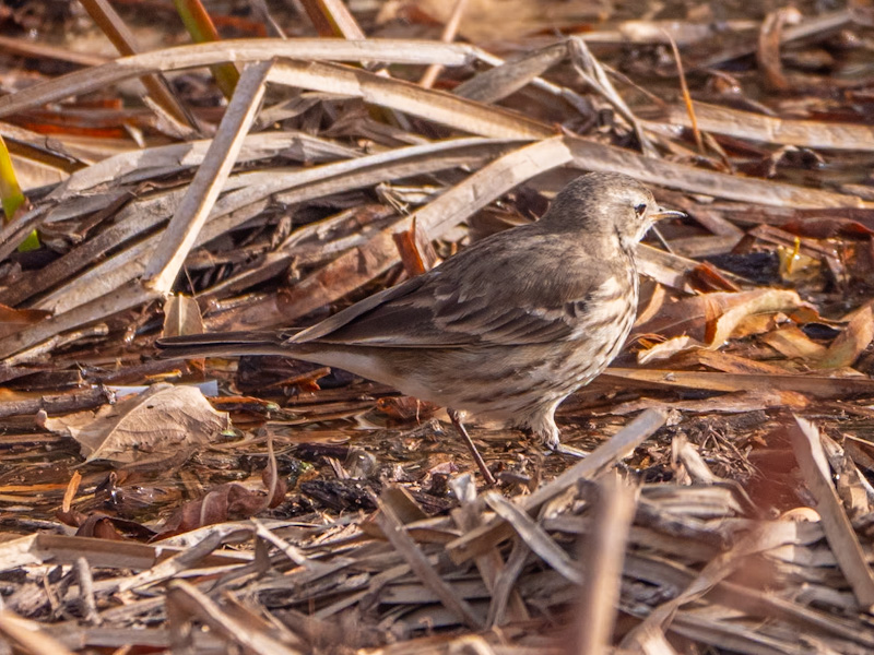 Description: Like most other pipits, the buff-bellied pipit is an undistinguished-looking species which usually can be seen to run around on the ground. The rubescens subspecies (or American pipit) has lightly streaked grey-brown upperparts and is diffusely streaked below on the buff breast and flanks. The belly is whitish, the bill and legs are dark. The japonicus subspecies (or Japanese pipit) is darker above and has bolder black streaking on its whiter underparts; its legs have a reddish hue.