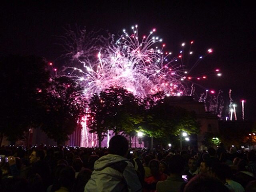 Last night they had a full one hour of fireworks at the Trocadero, again with a big crowd. I am just going to finish with some of my best shots of the fireworks. Everybody stayed up late last night, drinking and eating and this morning the place is dead.