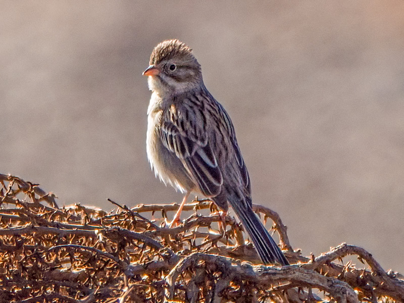 Subspecies: There are two subspecies, the Timberline Sparrow (Spizella breweri taverneri) seen in Alaska and Brewer’s Sparrow proper seen in western Canada and US.
