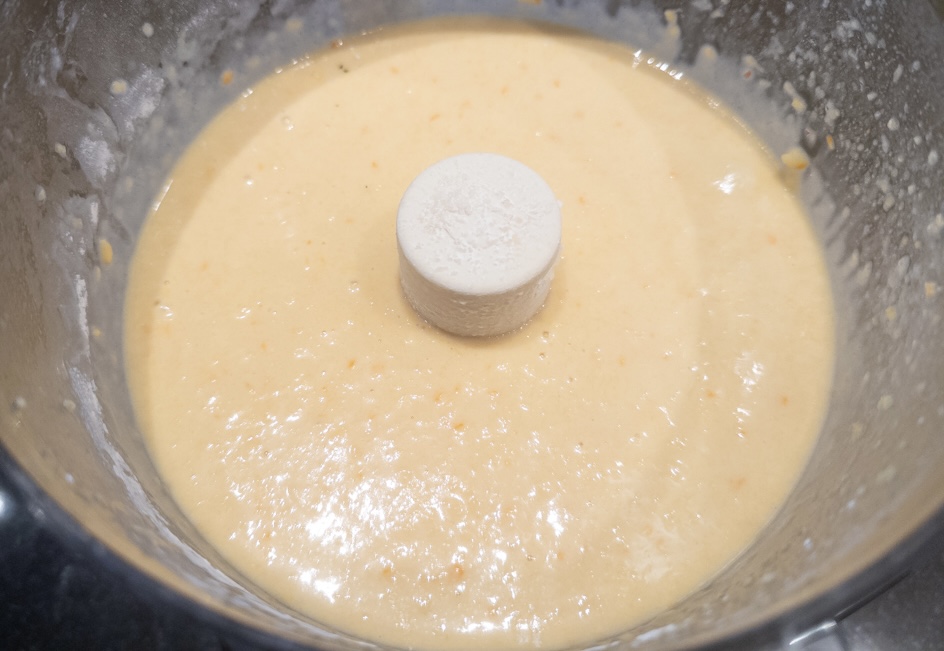 In a blender, combine the pieces of orange, sugar, oil, eggs, and vanilla. Place the lid on the blender and blend until the mixture is well combined and the oranges are puréed.