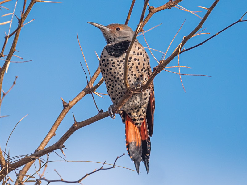 Distribution: It is native to most of North America, parts of Central America, Cuba, and the Cayman Islands, and is one of the few woodpecker species that migrate. Northern flickers are partial migrants, in which some southern populations are completely non-migratory. Those that do migrate tend to begin their spring migration towards the beginning of April and make their return between September and October. in Las Vegas they are non-migratory.