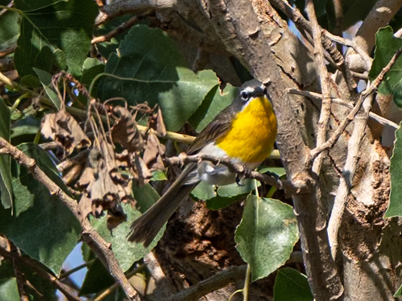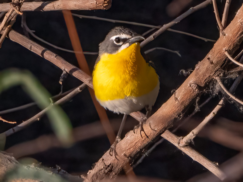 Distribution: The yellow-breasted chat is found throughout North America. It breeds from the southern plains of Canada to central Mexico, and mainly migrates to Mexico and Central America for the winter, although some may overwinter in coastal areas farther north. In Las Vegas, I have only seen this bird at the Wetlands and only in summer.